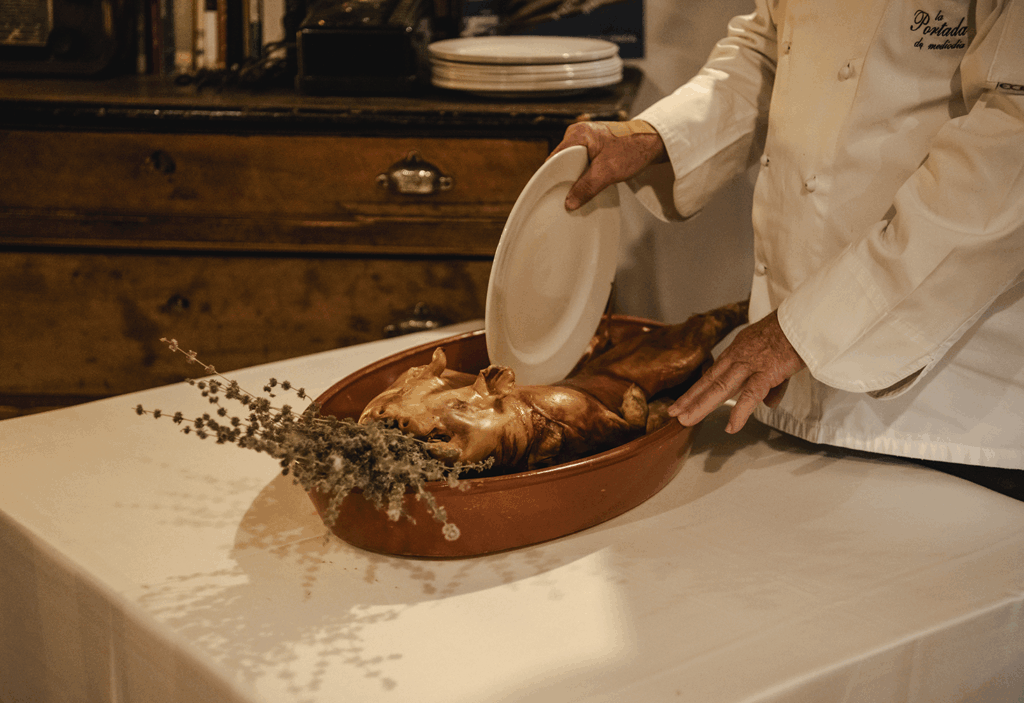 Back in March, Nieves and the team travelled to Segovia – the hilltop town north of Madrid famed for its dramatic Roman aqueduct, fairy-tale Alcázar, and one of Spain’s most iconic dishes: cochinillo asado, or roast suckling pig.